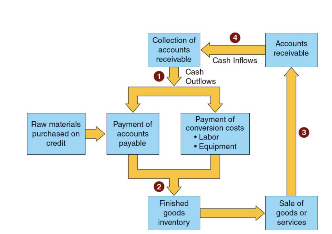 Cash conversion cycle: the point a company pays for raw materials until the point it receives cash from sales